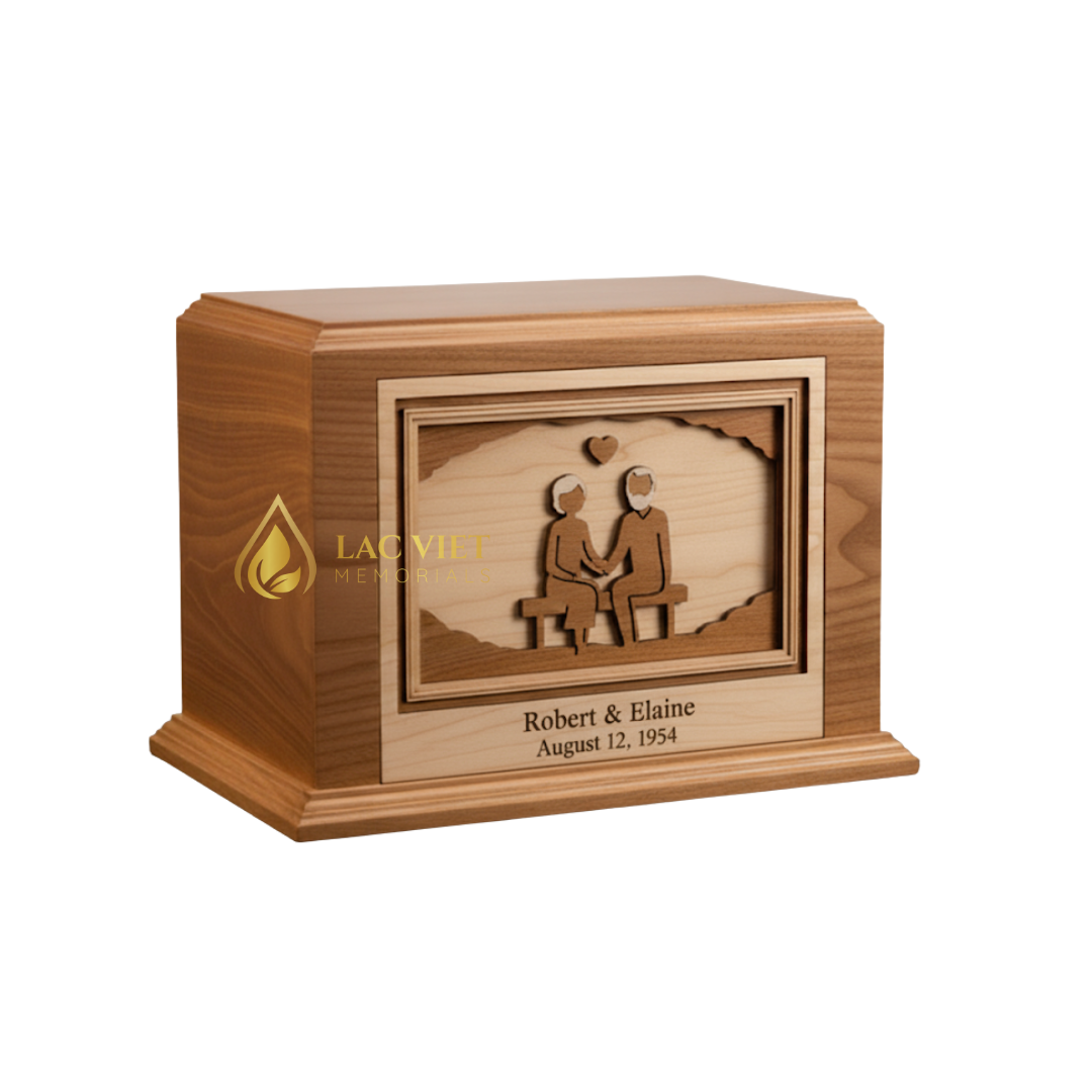 This wooden companion cremation urn is beautifully crafted to hold the ashes of two adults, symbolizing eternal love and unity. Featuring a heartfelt couple design, it serves as a lasting tribute to the bond shared in life and beyond.