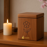 Made from high-quality wood, this urn combine a classic, warm feel with a touch of luxury. Their beauty comes from the intricate flower inlay, which adds a subtle, iridescent shimmer and a sense of enduring elegance to a timeless piece.
