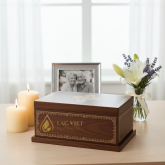 This Wooden Keepsake Urn Box is beautifully handcrafted in a rectangular design, featuring an engraved cross that symbolizes faith and remembrance. Its timeless style makes it not only a memorial urn but also a meaningful keepsake that honors cherished memories.